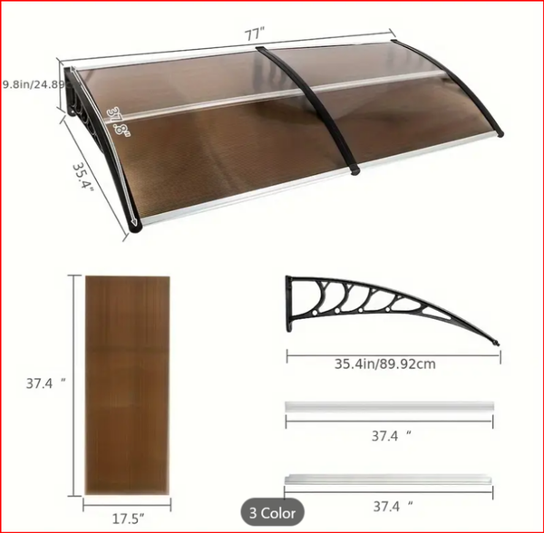 80*38in Awning Plastic Bracket Sun Panel Front And Rear Aluminum Strips Garden Decoration Home Decoration Window Shed Balcony Shed Easy to Install, Wind And Rainproof Design, Anti-ultraviolet And WaterproofMaterial: Plastic, AluminumItem ID: EP71094Origin: