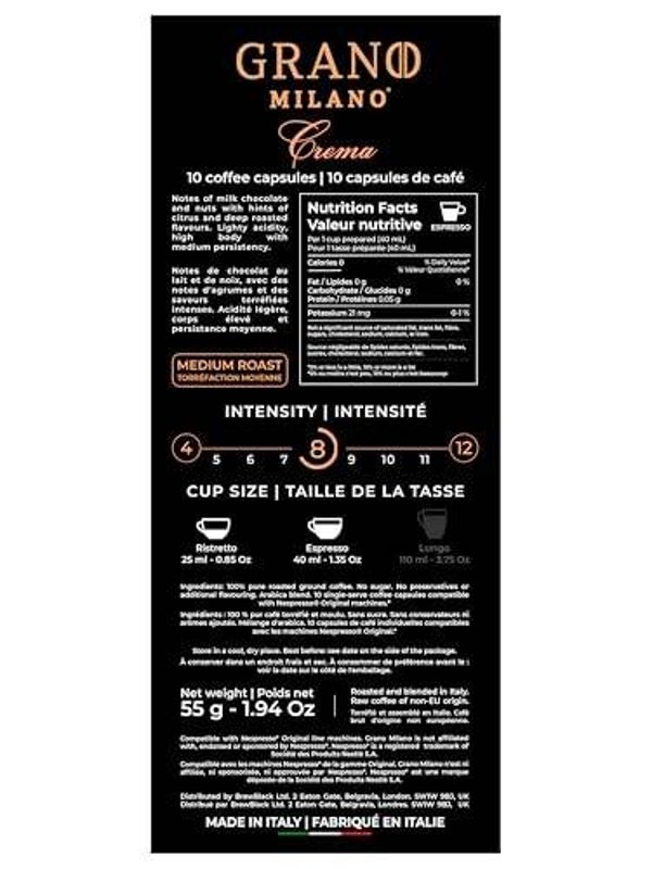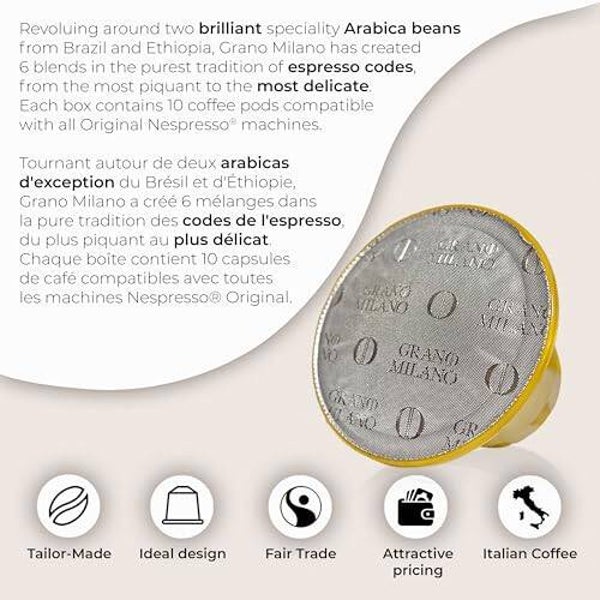 *COMPATIBLE WITH - These Grano Milano capsules are compatible only with Nespresso OriginalLine Coffee Machines, not compatible with the Vertuo line. Legal Disclaimer: Grano Milano is not affiliated with, endorsed, or sponsored by Nespresso.