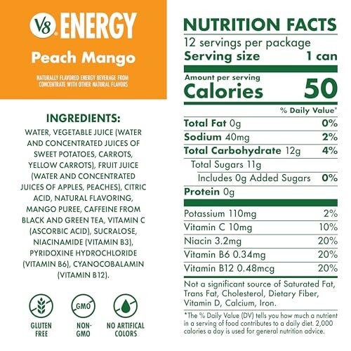 Perfect for health-conscious consumers who want both flavor and functionality, V8 Energy Peach Mango delivers clean energy with a delicious tropical twist.