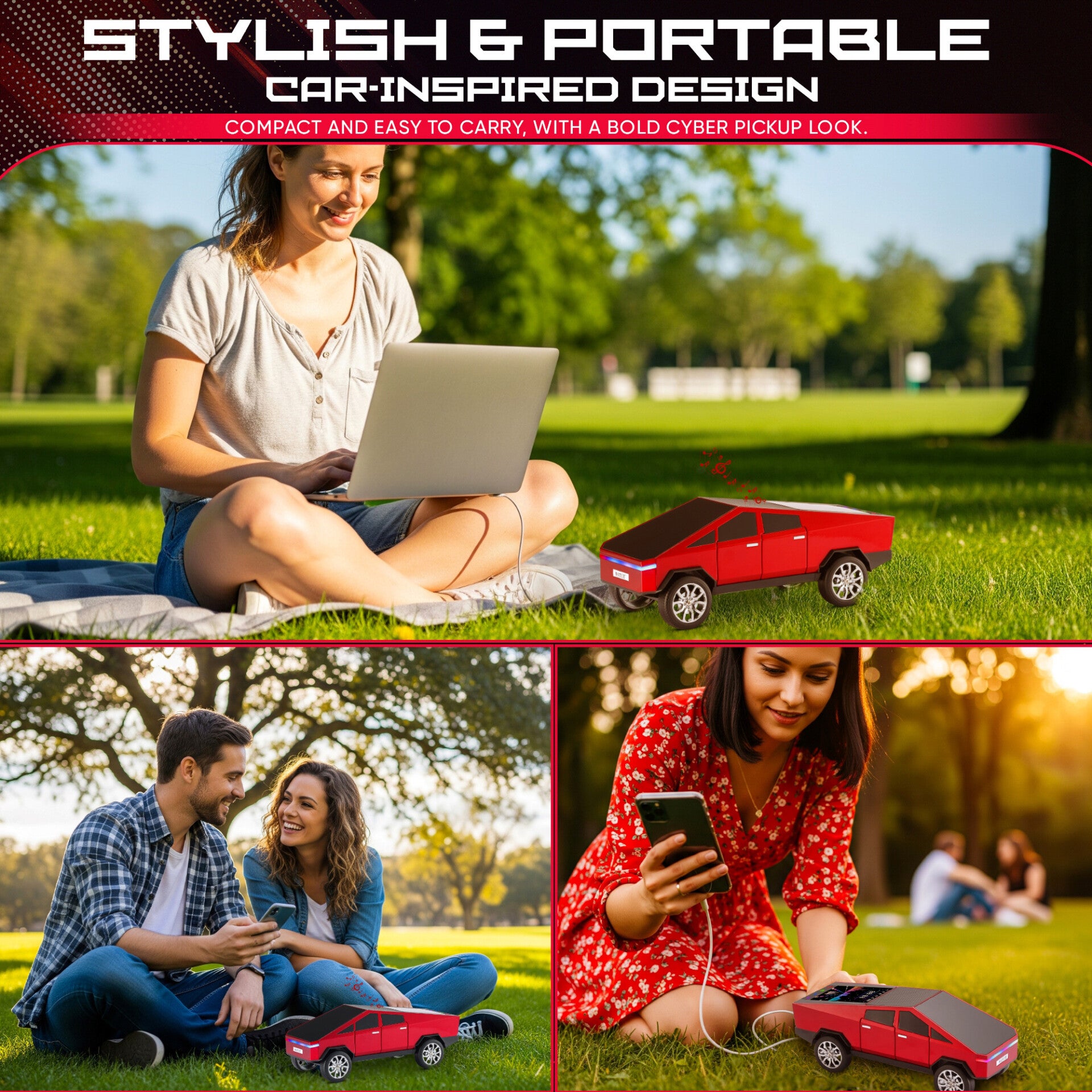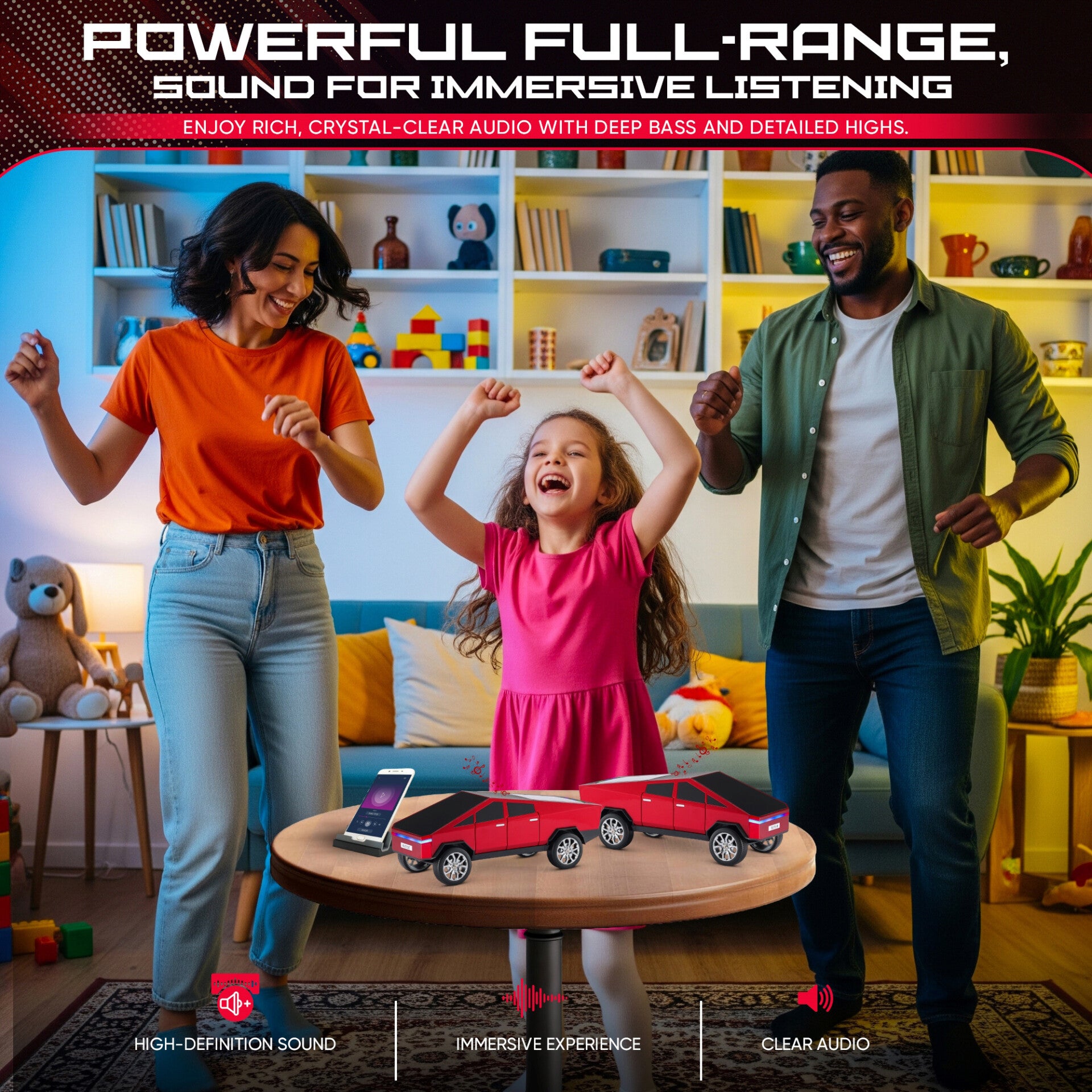 Experience powerful sound in a compact and eye-catching design with this Mini Car Bluetooth Speaker featuring Rear LED Light and Openable Cybertruck Style Body. Combining portable wireless stereo sound with a futuristic car-inspired look, this speaker is perfect for music lovers who appreciate both performance and style.