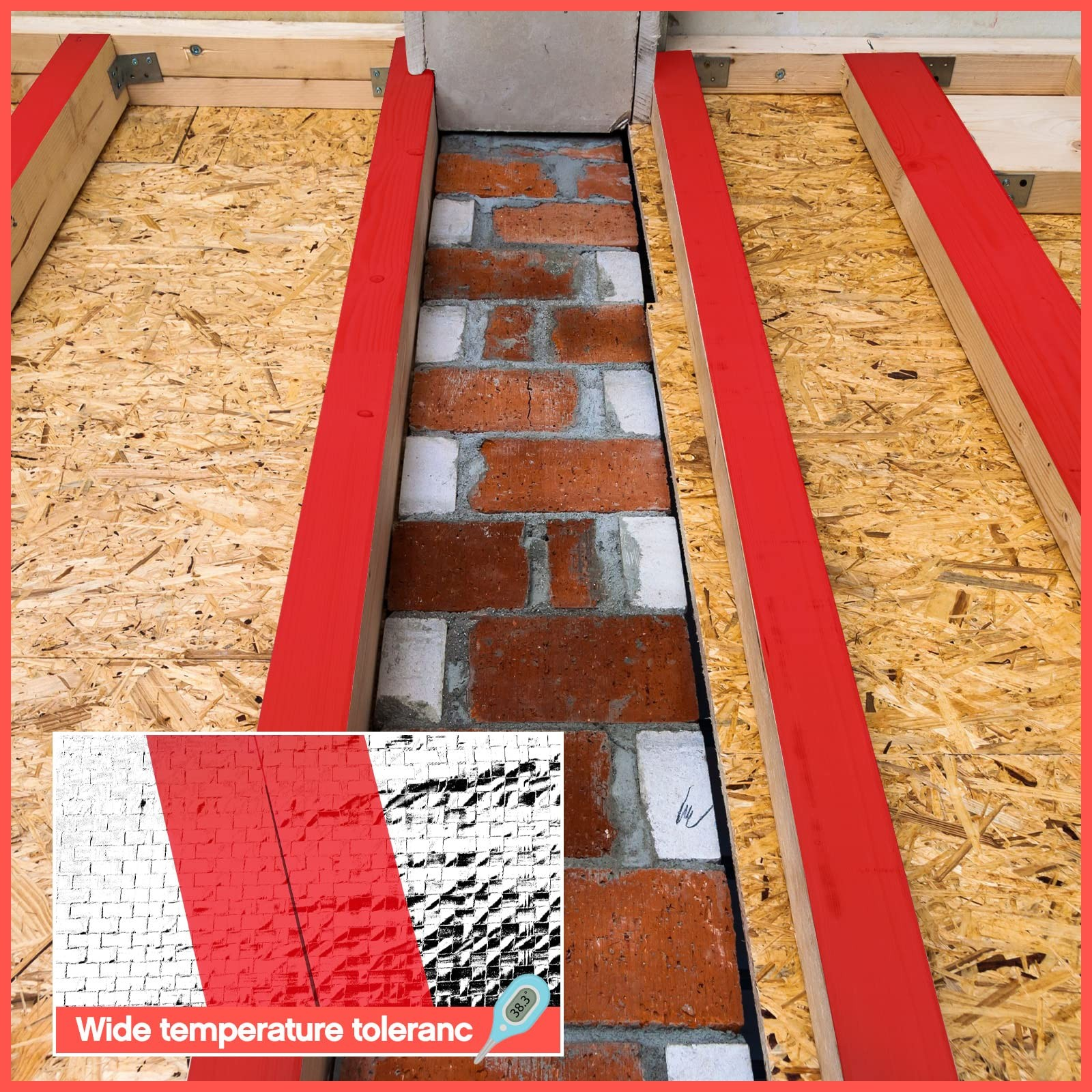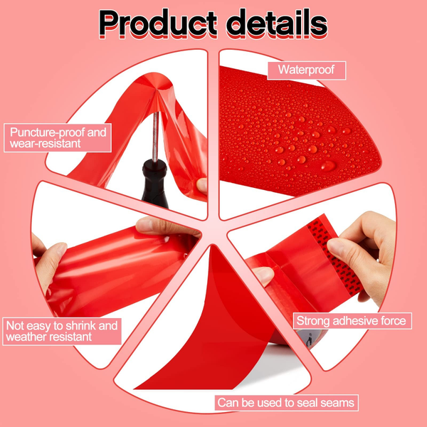 The red waterproof tape is designed for seaming, splicing, sealing, and repairing for moisture barriers, both inside and outside.