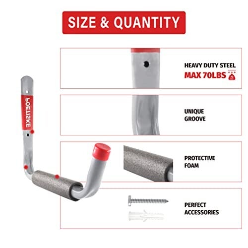 POETISKE Utility Hooks Ladder Hooks with 9.8'' Jumbo Arm Garage Storage Organizer Hang Folding Chair Bike Ski Tool Heavy Duty 4PC