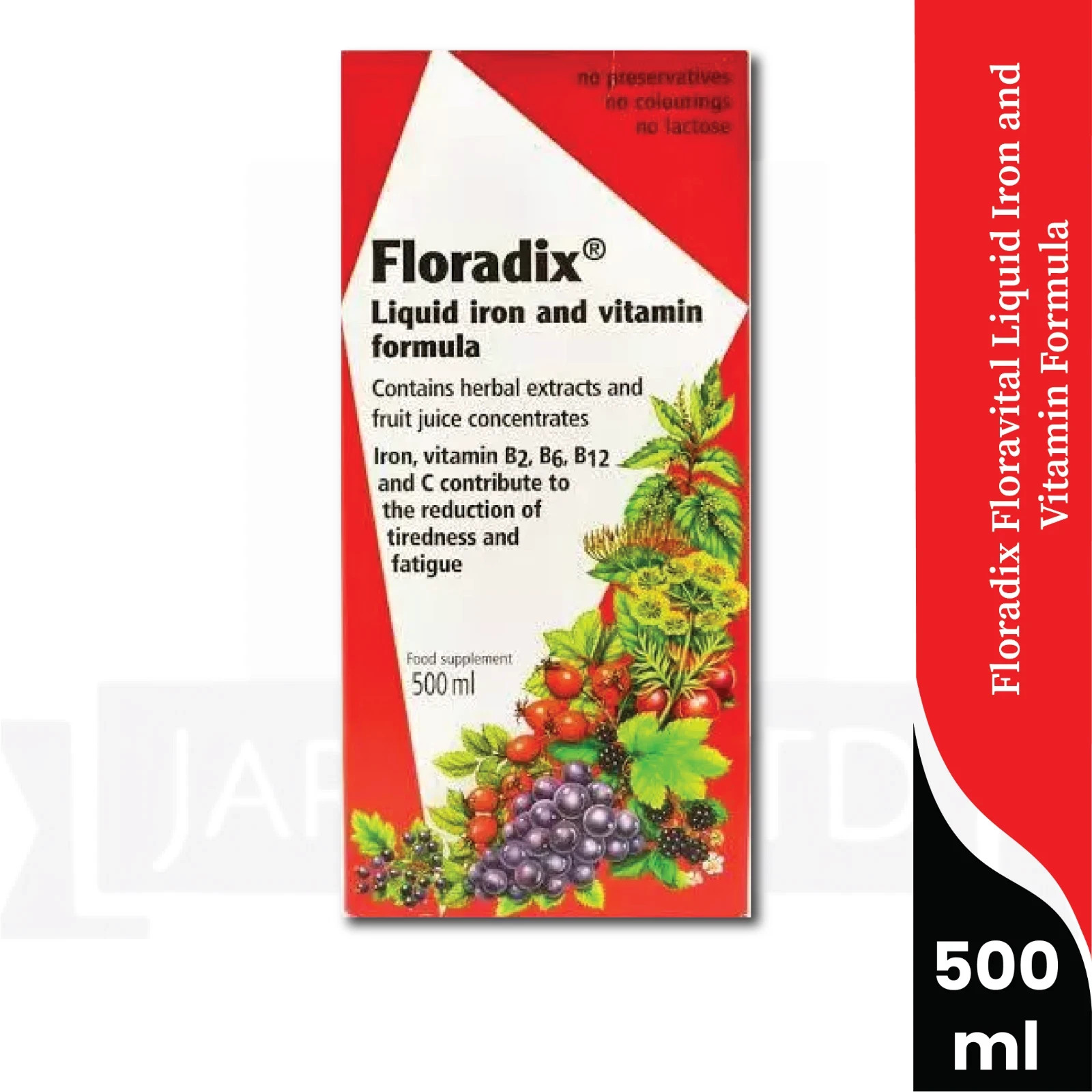 Floradix Liquid Iron & Vitamin Formula Energy & High Absorption 500ml Pack of 4