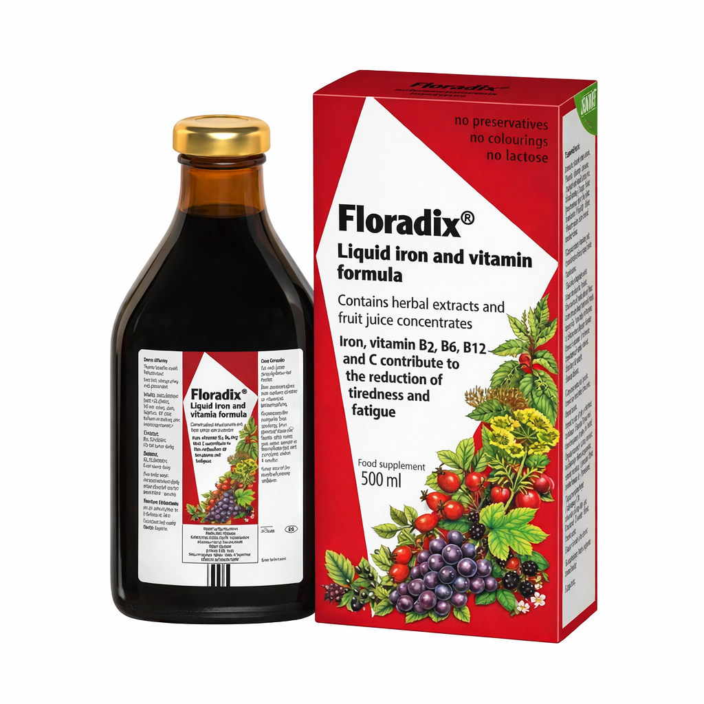 Floradix is a gentle yet effective iron supplement designed to support energy levels and reduce fatigue. Its liquid formulation allows for faster absorption while being kind to the stomach. Enriched with vitamin C and B vitamins, it supports red blood cell formation and overall vitality.
