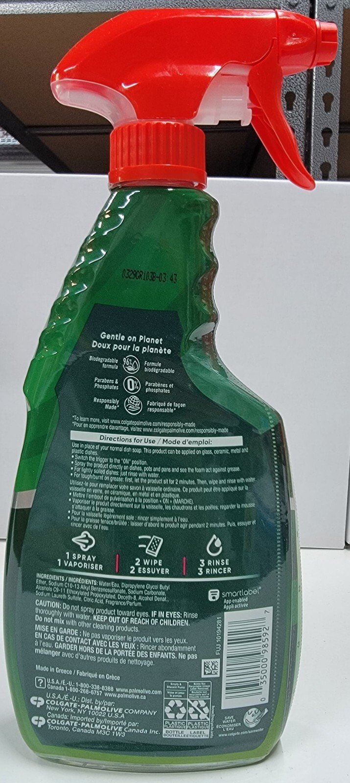 Dish soap spray quickly dissolves stuck on and baked on grease. Works faster and provides more powerful grease cleaning vs. regular Palmolive dish soap* *vs. Palmolive Essential Clean dish soap
