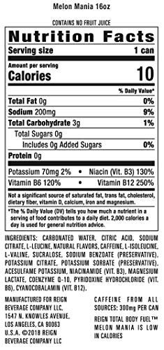 Reign Total Body Fuel, Melon Mania, Fitness & Performance Drink, 16 Fl Oz | Pack of 12