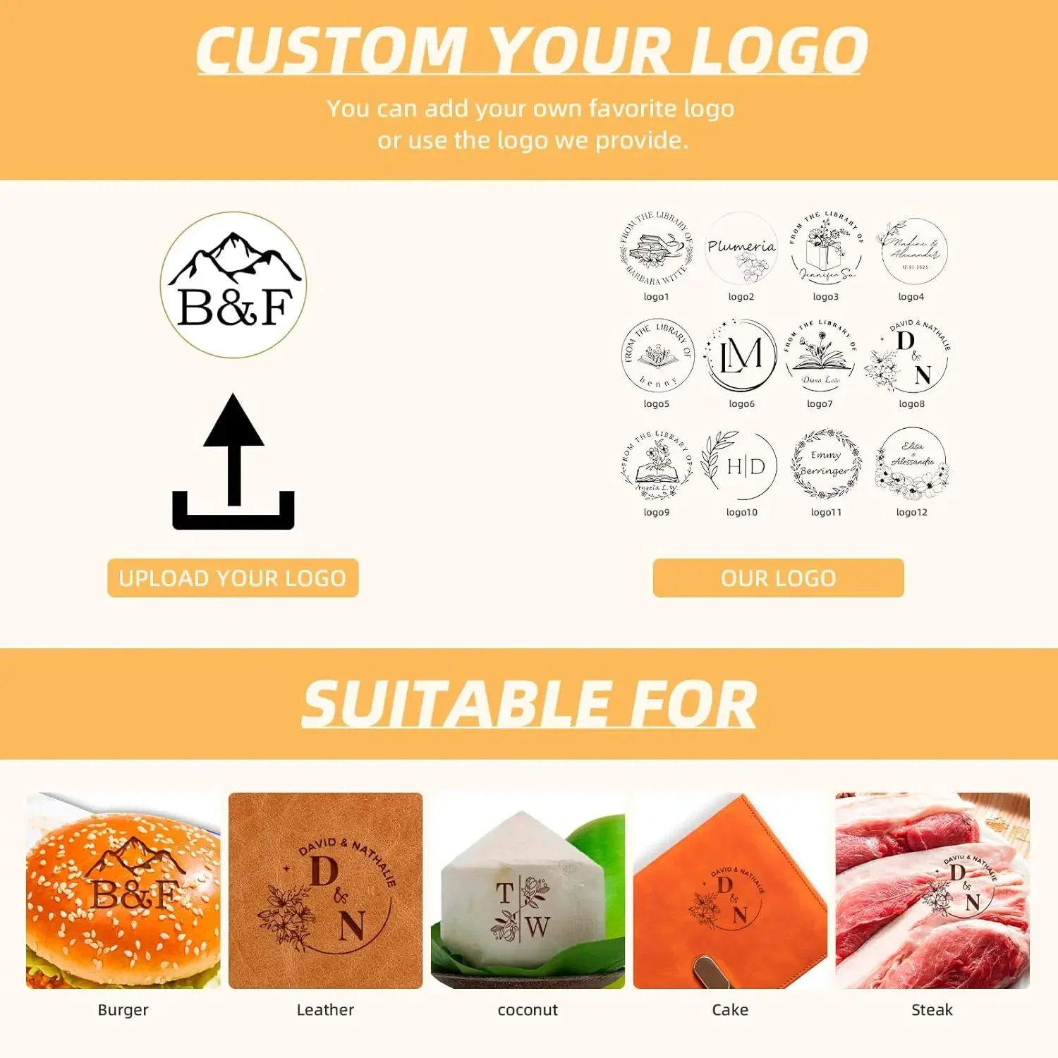 Custom Logo Branding Iron for Burger,Personalized Brass Steak & Burger Brander,Professional BBQ, Coconut, Cake Stamp for lasting impression